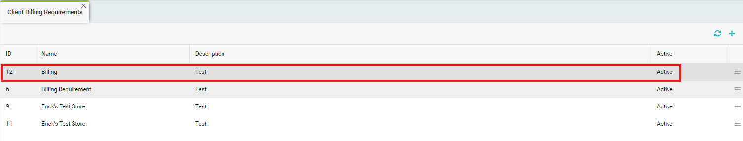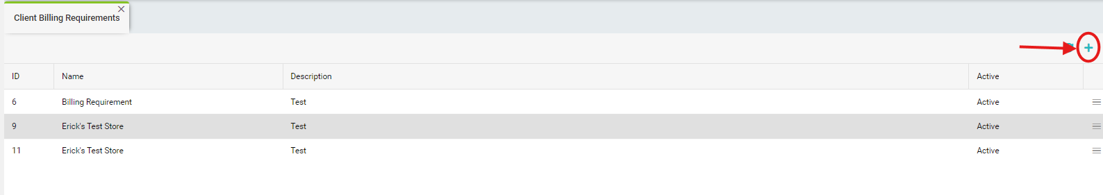 2. From this screen, clicking the blue "Plus" sign will allow users to add a Billing Requirement.