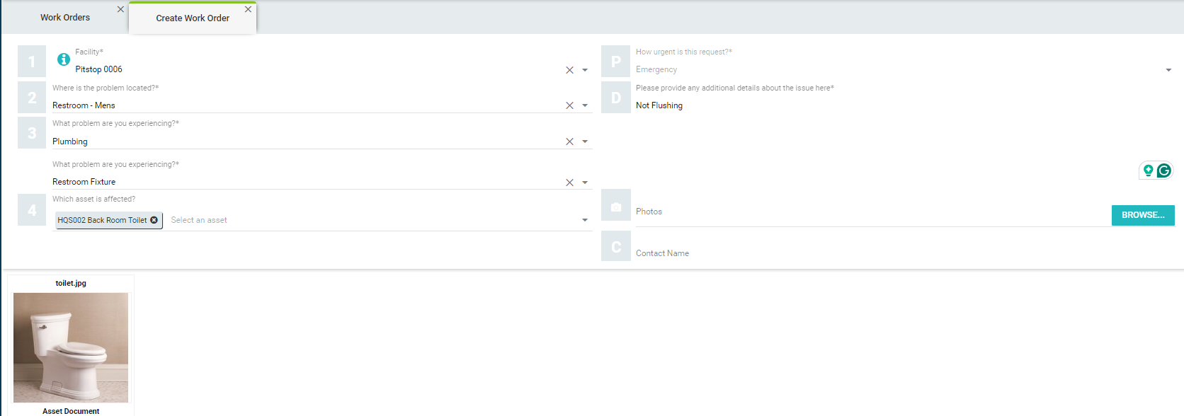 Once the work order creation form opens, you will need to fill out any fields marked with an asterisk (*). Below is a general guideline to follow however, the fields you see may vary slightly depending on your system's configuration.