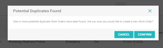 You will be prompted to confirm that the work order is not a duplicate before saving.